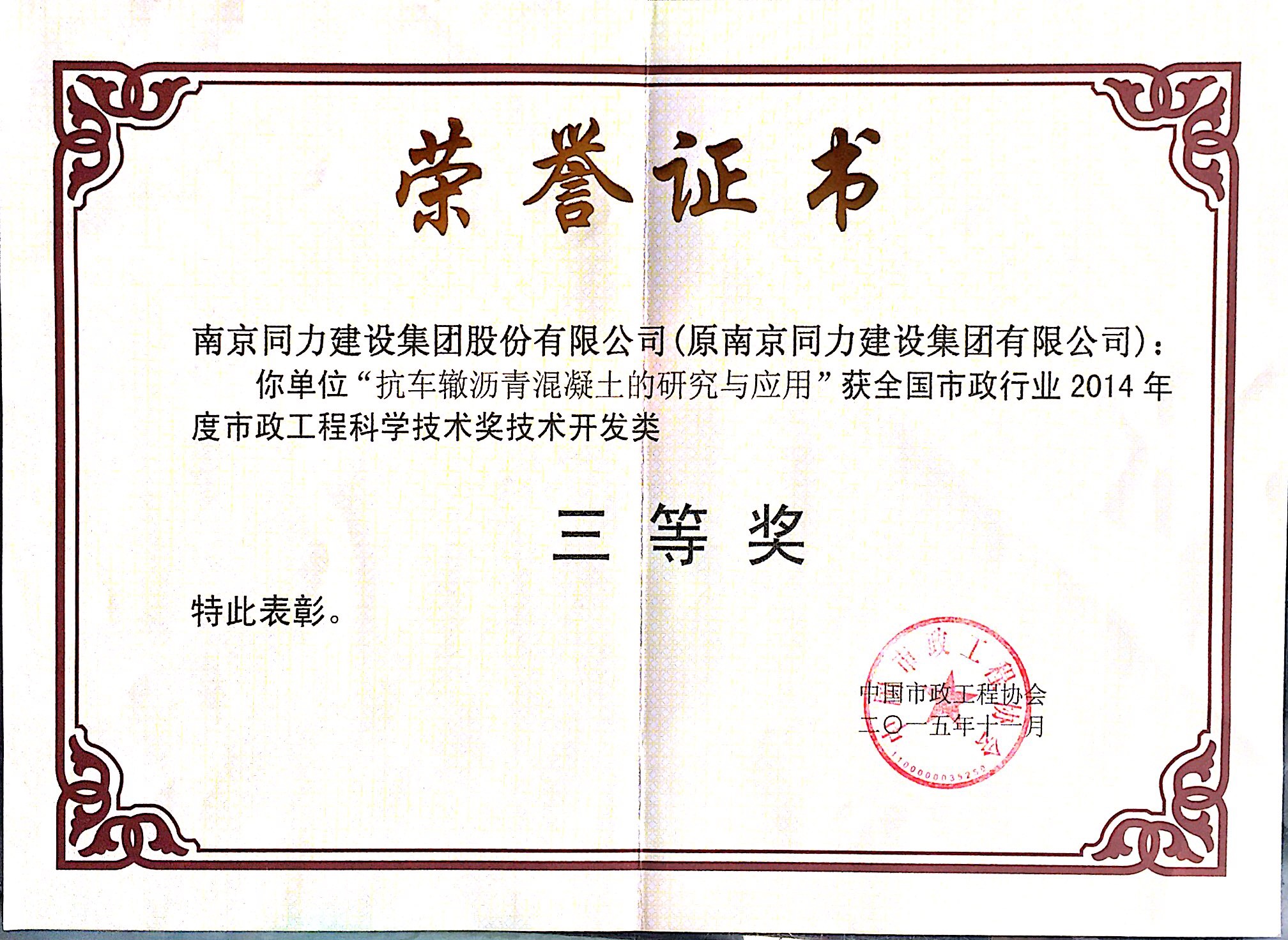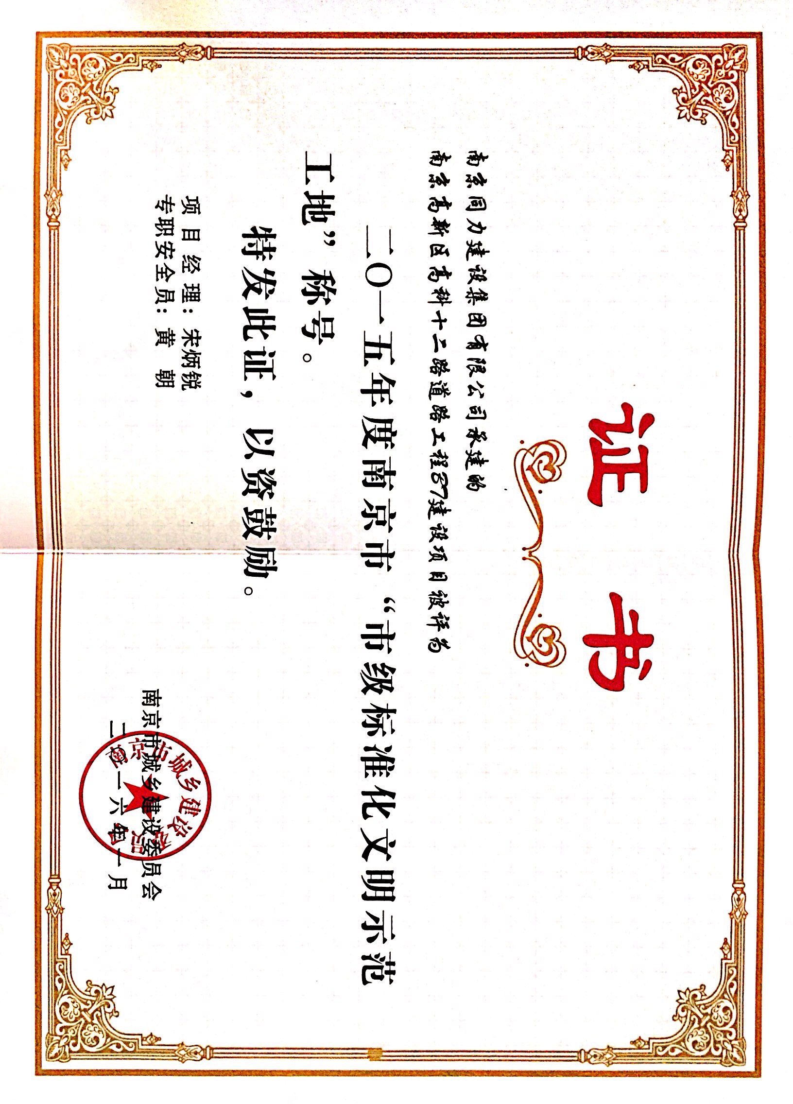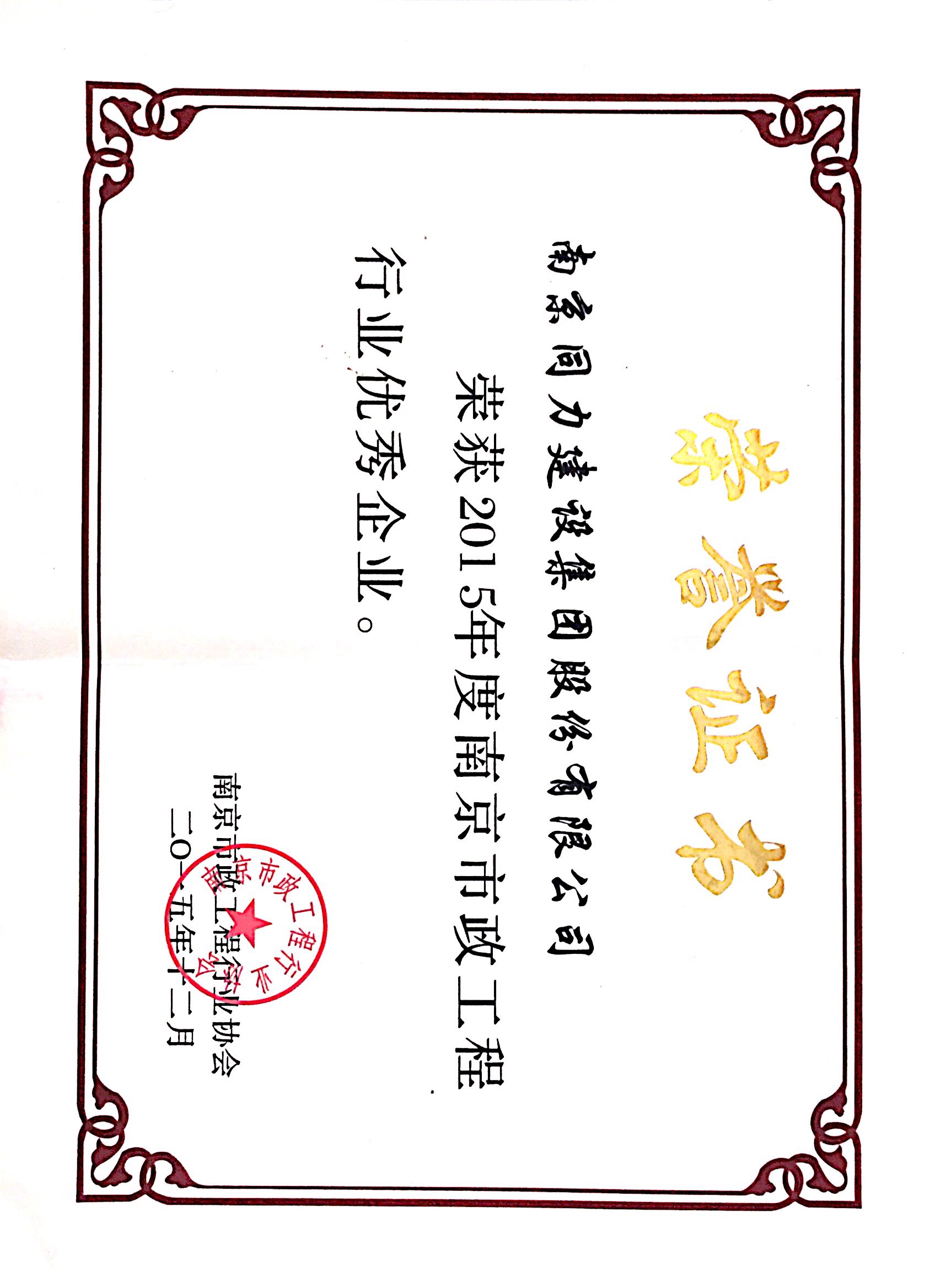 公司獲得“2015年度南京市政工程行業(yè)優(yōu)...