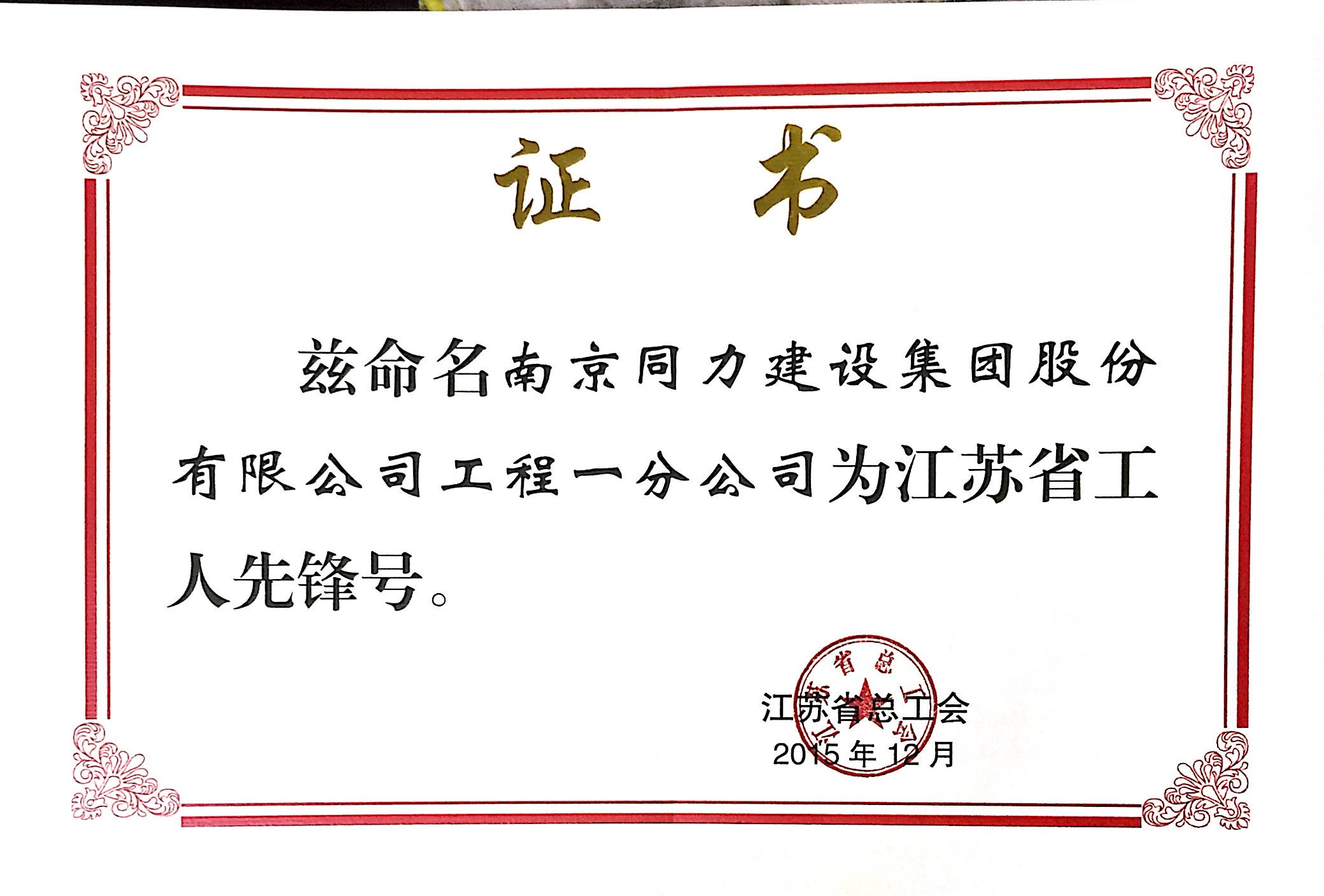 工程一分公司被評(píng)為江蘇省工人先鋒號(hào)