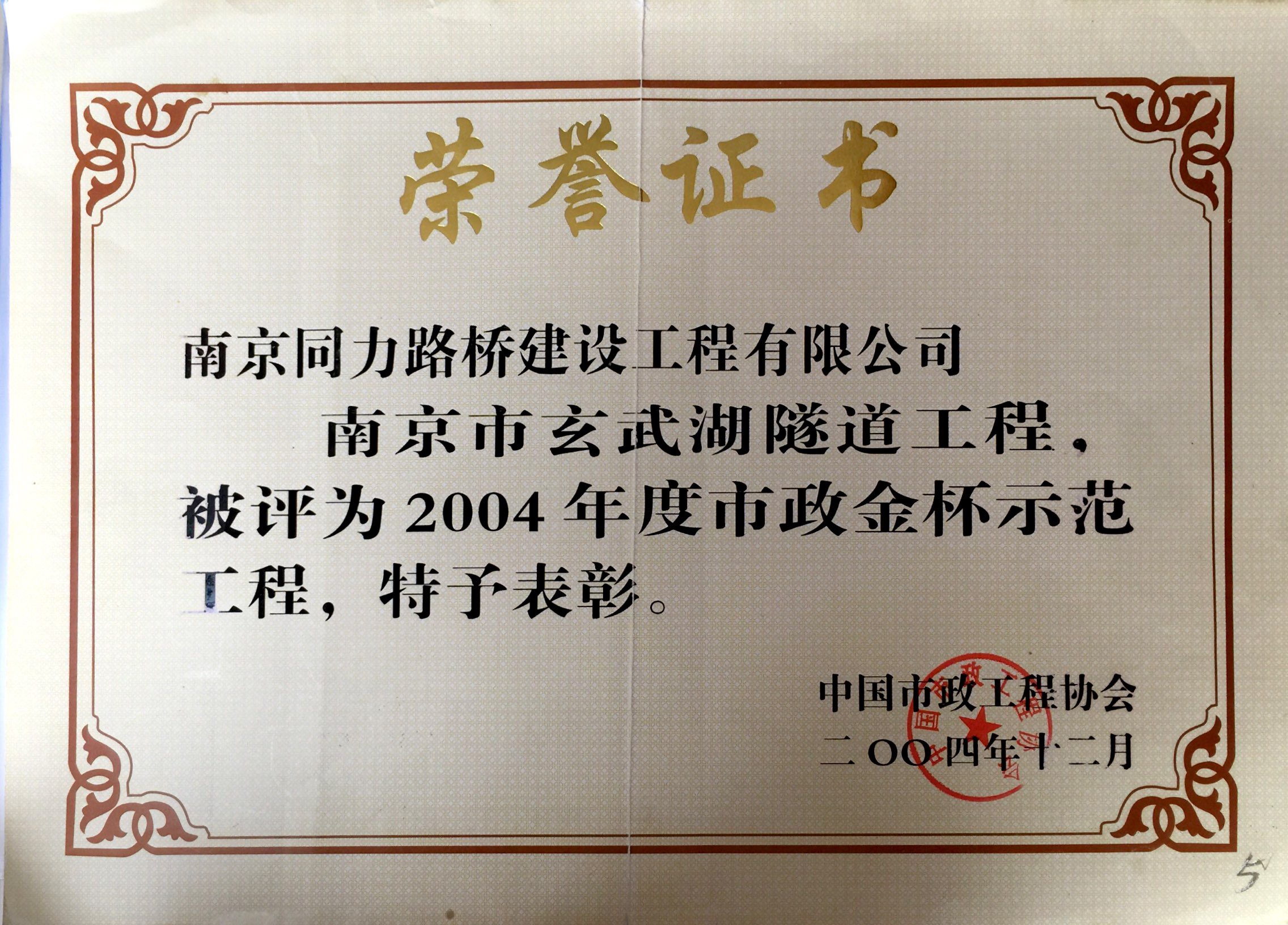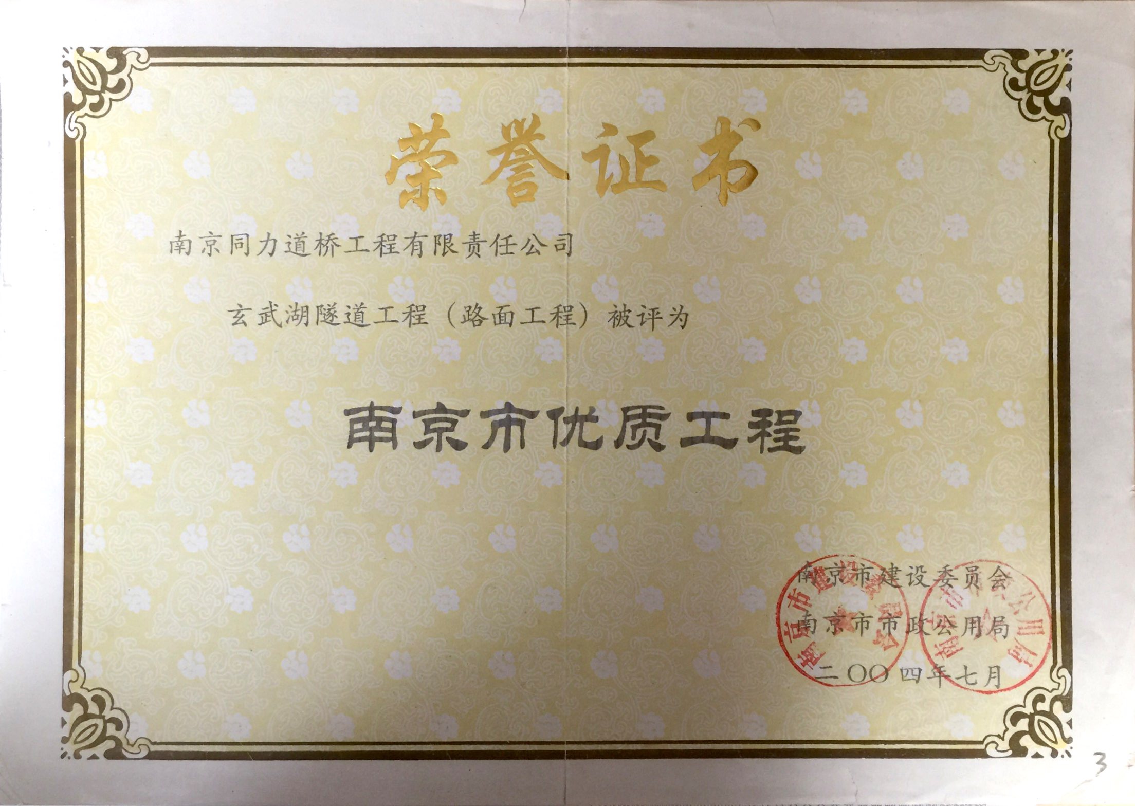 玄武湖隧道工程被評為“2004年度江蘇省...