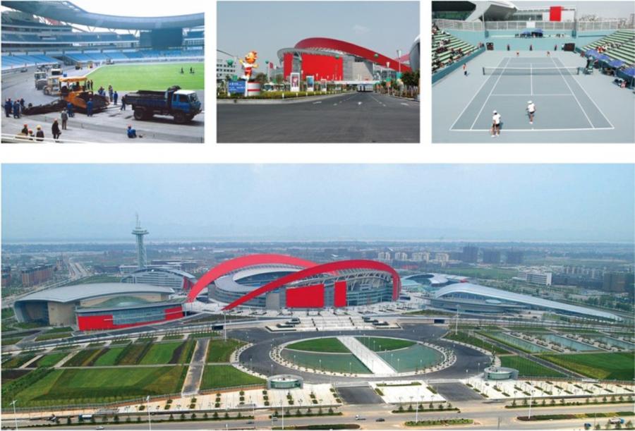 南京奧體中心工程是國家十運(yùn)會主場館,也是江蘇省重點(diǎn)工程,工期、質(zhì)量容不得一點(diǎn)馬虎。工程包括室內(nèi)室外場地及攤鋪任務(wù),以及主體育場、訓(xùn)練場、十二片網(wǎng)球場的結(jié)構(gòu)層施工任務(wù)。奧體中心室外瀝青砼、網(wǎng)球場瀝清砼等工程量小但要求極其嚴(yán)格,眾多瀝青砼生產(chǎn)公司受困于設(shè)備和技術(shù),知難而退。