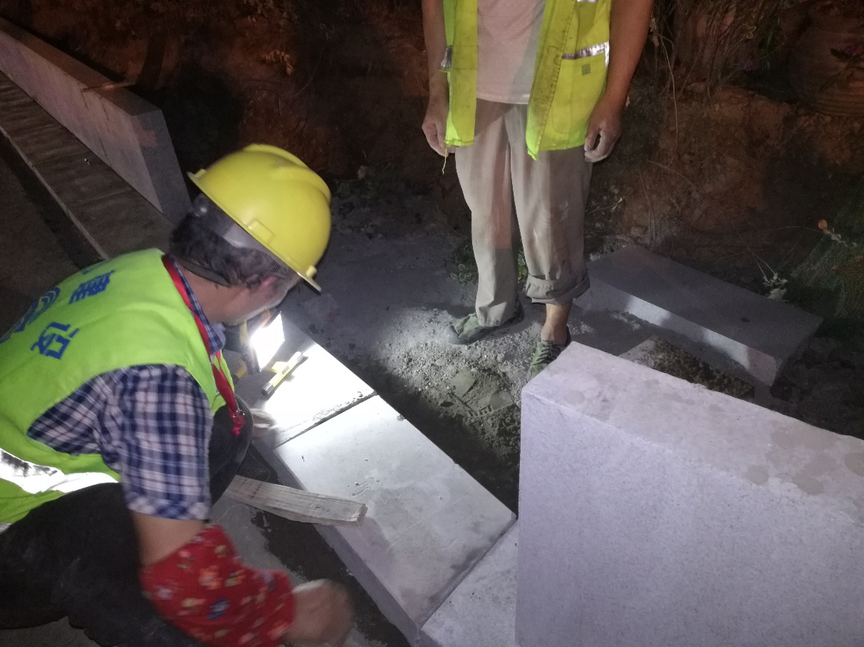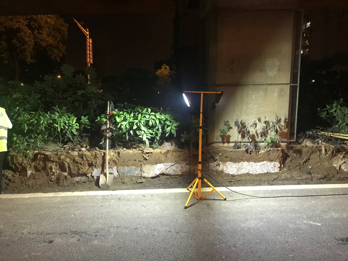 開工后外部條件復(fù)雜,名城會(huì)、中高考護(hù)考、梅雨等都大大影響了工期。開保工至今幾乎有2\3的時(shí)間無(wú)法正常施工。針對(duì)護(hù)考、重要活動(dòng)保供節(jié)點(diǎn)等特殊時(shí)段,正一方面多方協(xié)調(diào),盡可能爭(zhēng)取相對(duì)寬松的外部條件;一方面果斷調(diào)整工序,在禁運(yùn)禁噪前夕組織加大力量集中實(shí)施產(chǎn)生道大量渣土和噪音的側(cè)平石拆除作業(yè),并用圍擋密圍占住原側(cè)平石區(qū)域防止土方流失。確保了在護(hù)考時(shí)期可以只施工路緣石鋪貼等不產(chǎn)生噪音的工序。同時(shí)為了切實(shí)在護(hù)考期間將噪音降至最低,經(jīng)過(guò)調(diào)研,項(xiàng)目部給各作業(yè)班組更換采用太陽(yáng)能充電鋰電池LED燈等新型照明設(shè)備。這類新設(shè)備價(jià)格不貴,又不用燃油發(fā)動(dòng)機(jī)提供電能,不僅解決了燃油發(fā)動(dòng)機(jī)的噪音問題,同時(shí)移動(dòng)便利也方便了施工。